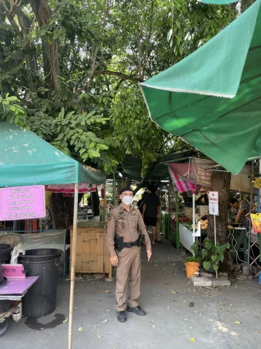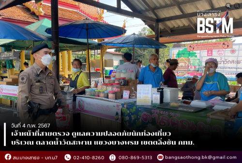 และเจ้าหน้าที่สายตรวจ ดูแลความปลอดภัยนักท่องเที่ยว บริเวณ ตลาดน้ำวัดสะพาน แขวงบางพรม เขตตลิ่งชัน กทม.