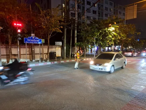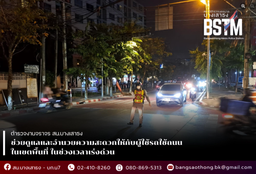สว.จร.สน.บางเสาธงและเจ้าหน้าที่ตำรวจงานจราจร สน.บางเสาธง ช่วยดูแลและอำนวยความสะดวก