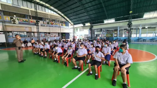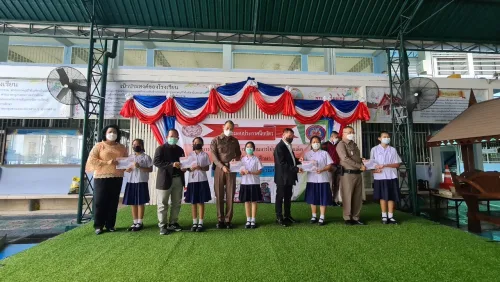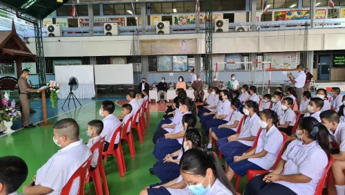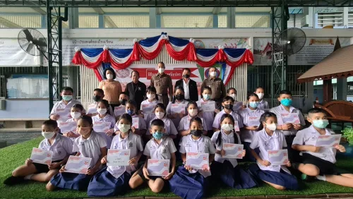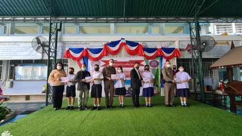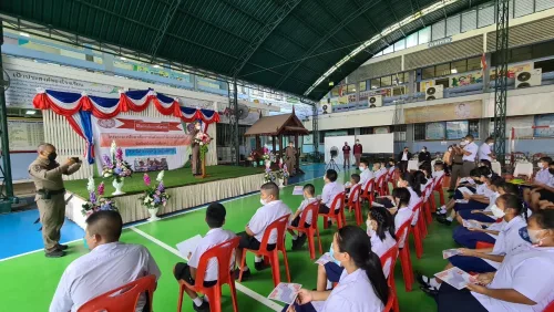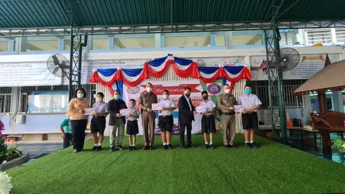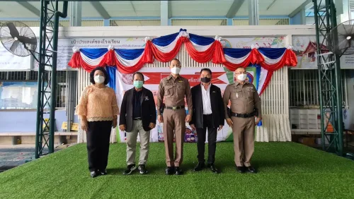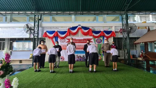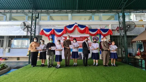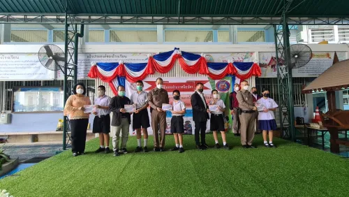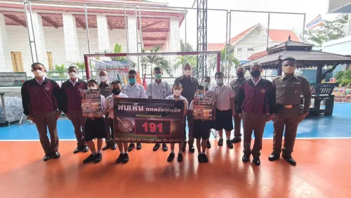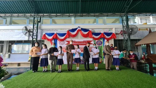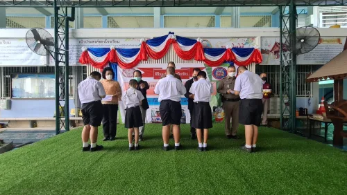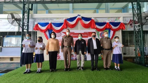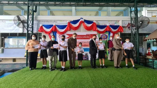 วันที่ 29 พ.ย.65 เวลา 13.00 น.พ.ต.อ.ศุภศักดิ์ โปรียานนท์ ผกก.สน.บางเสาธง ,นายตุม ชอบมาก กต.ตร.สน.บางเสาธง,นายนำชัย ปองเสงี่ยม ที่ปรึกษา กต.ตร.สน.บางเสาธง ,ผอ.รร.วัดรัชฎาธิษฐาน,พ.ต.ท.อนันต์ วงทาษี รอง ผกก.ป.สน.บางเสาธง มอบหมายให้ พ.ต.ท.บรรลุ เพลิดนอก สวป.สน.บางเสาธง,ร.ต.อ.วัชรินทร์ คงทรัพย์ รอง สวป.สน.บางเสาธง ,ส.ต.อ.ธีระวัตร เวียงจันทร์ ครูตำรวจแดร์ สน.บางเสาธง มอบใบประกาศนียบัตรให้กับนักเรียนชั้นประถมศึกษาปีที่ 5 รร.วัดรัชฎาธิษฐานทั้งนี้พร้อมประชาสัมพันธ์การพนันฟุตบอลโลกด้วย