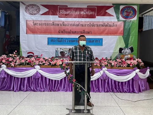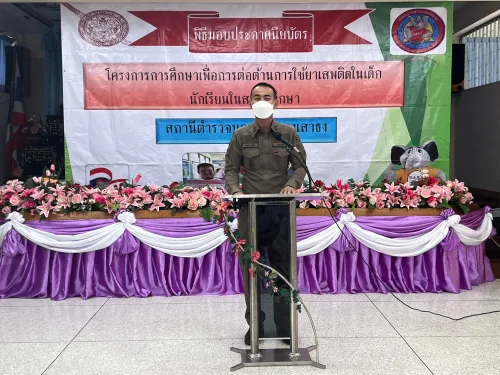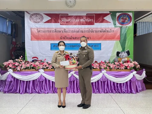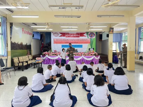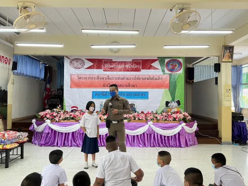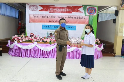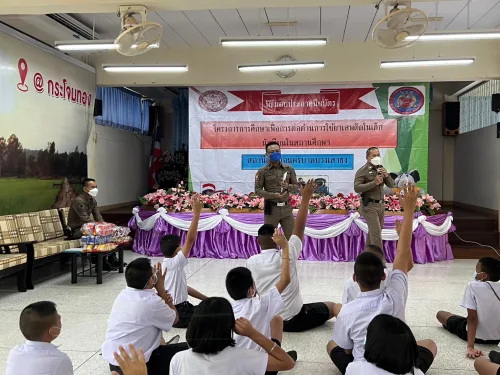 ร่วมพิธีปิดและมอบใบประกาศนียบัตรให้แก่นักเรียนในโครงการต่อต้านการใช้ยาเสพติดและความรุนแรงในเด็กนักเรียน (D.A.R.E.)2/2565 ของ นักเรียนชั้น ป.5 โรงเรียนวัดกระโจมทอง แขวงบางพรม เขตตลิ่งชัน กทม.