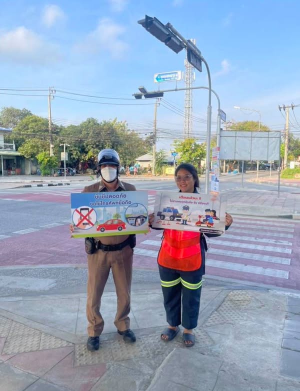 25 เมษายน 68 เวลา 13.00 น. เจ้าหน้าที่ตำรวจจราจรประชาสัมพันธ์“รณรงค์สวมหมวกนิรภัยและการข้ามถนนใช้ทางม้าลาย ใช้สะพานลอยเพื่อความปลอดภัยบนท้องถนน” แยกพุทธมณฑลสายหนึ่ง ด้วยความปรารถนาดีจากงานจราจร สน.บางเสาธง