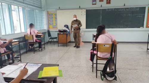 เข้าทำการสอนให้ความรู้แก่นักเรียนเรื่องโทษ และอันตรายของกัญชาและผลกระทบจากการดื่มเหล้า ให้กับนักเรียนชั้นประถมศึกษาปีที่ 5 โรงเรียนวัดประสาท แขวงบางพรม เขตตลิ่งชัน กทม.