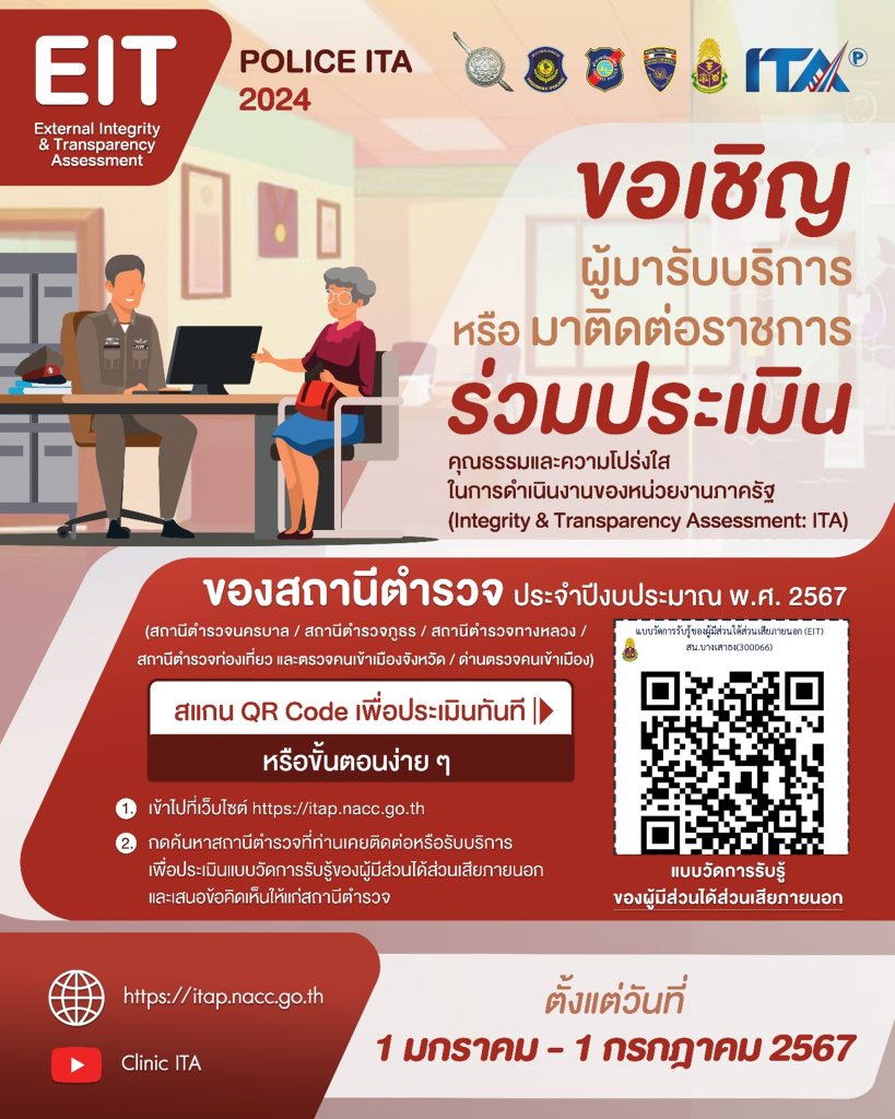 ขอเชิญชวนผู้มารับบริการ / มาติดต่อสถานีตำรวจร่วมประเมิน
