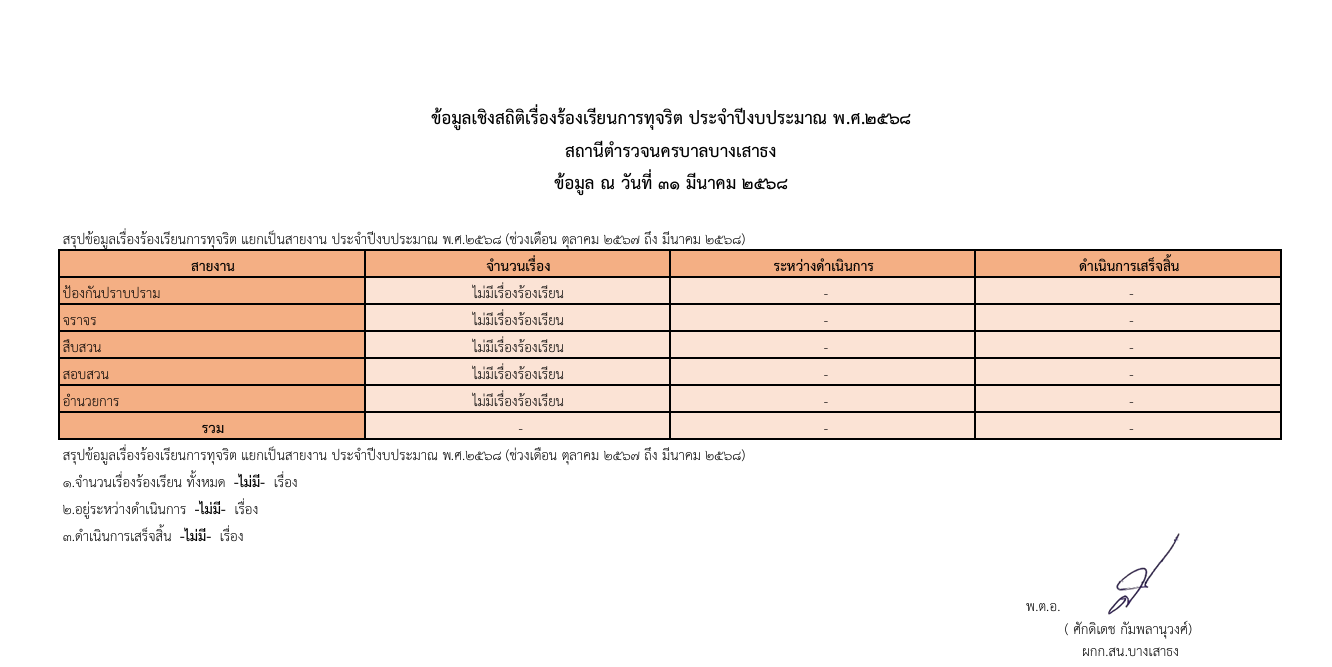 ITA67-O18 ช่องทางการแจ้งเรื่องร้องเรียนการทุจริตและข้อมูลเชิงสถิติเรื่องร้องเรียนการทุจริตPublished by ส.ต.ต.ณภัทร ดอกบัว on 28 เมษายน 202528 เมษายน 2025 ข้อมูลเชิงสถิติร้องเรียนการทุจริต ประจำปีงบประมาณ พ.ศ.2568 PDF Categories: ITA-68